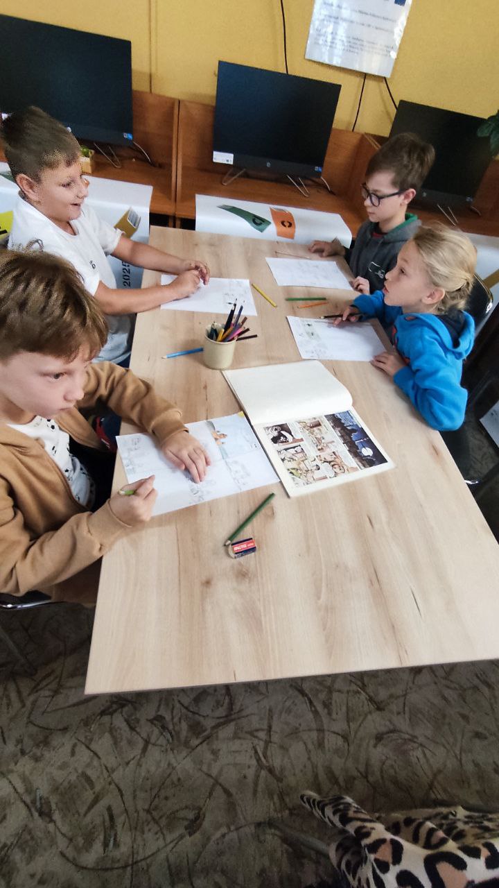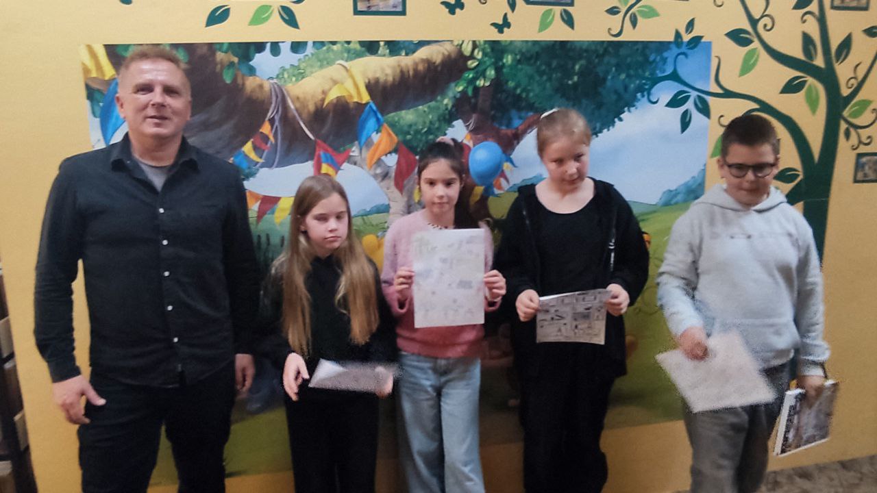 Gratulujemy uczestnikom zdolności plastycznych! Dziękujemy za spotkanie panu Zbigniewowi, a dzieciom za twórczo spędzony czas w naszej bibliotece.