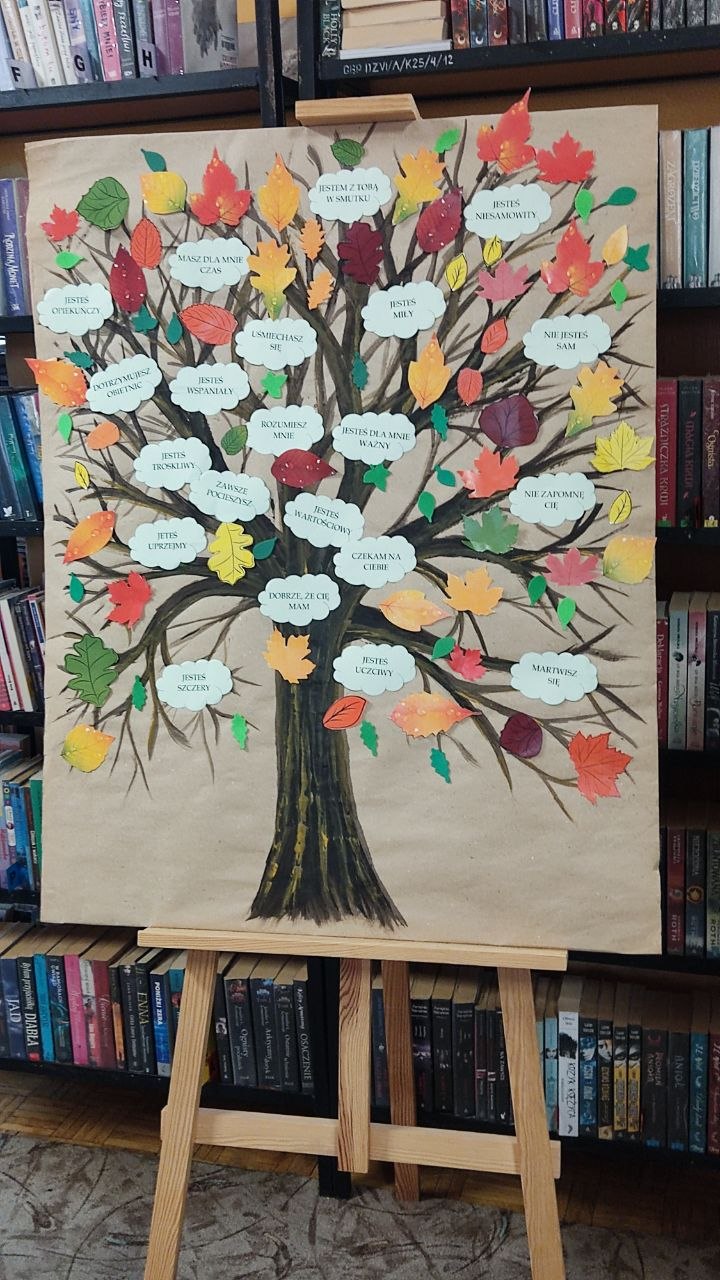 Tematem spotkania w dniu 26 listopada była przyjaźń. Razem "posadziliśmy" w bibliotece „Drzewo dobrych słów”. Zamiast liści – wyrastały na nim uśmiechy, życzliwość i serdeczne myśli. To drzewo rośnie szybciej niż jakiekolwiek inne – bo podlewa je przyjaźń! Była to prawdziwa uczta dla duszy!