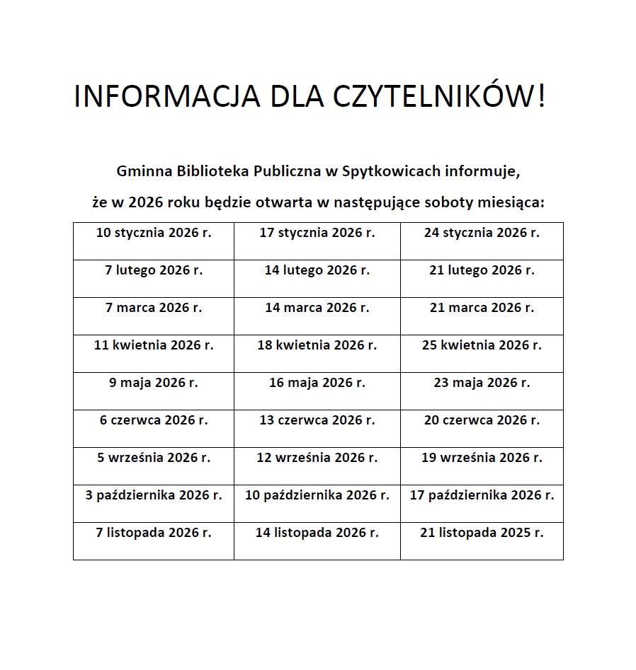 Gminna Biblioteka Publiczna w Spytkowicach otrzymała dofinansowanie w wysokości 17 230,00 zł. ze środków finansowych Ministra Kultury i Dziedzictwa Narodowego w ramach realizacji Narodowego Programu Rozwoju Czytelnictwa 2.0 na lata 2021-2025, na zakup nowości wydawniczych oraz usługi zdalnego dostępu do książek w formatach e-booków i/lub audiobooków i/lub synchrobooków – Priorytet 1, Kierunek interwencji 1.1 w ramach NRPCz 2.0.