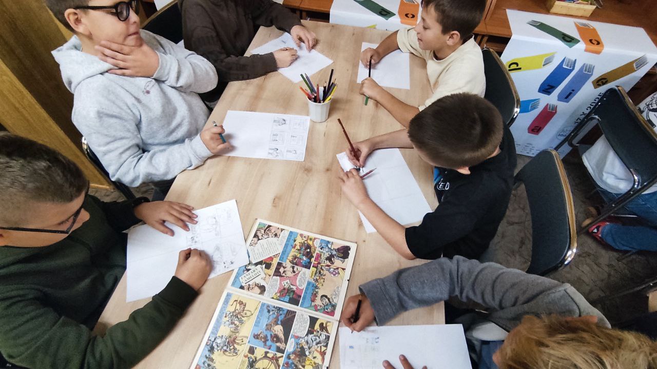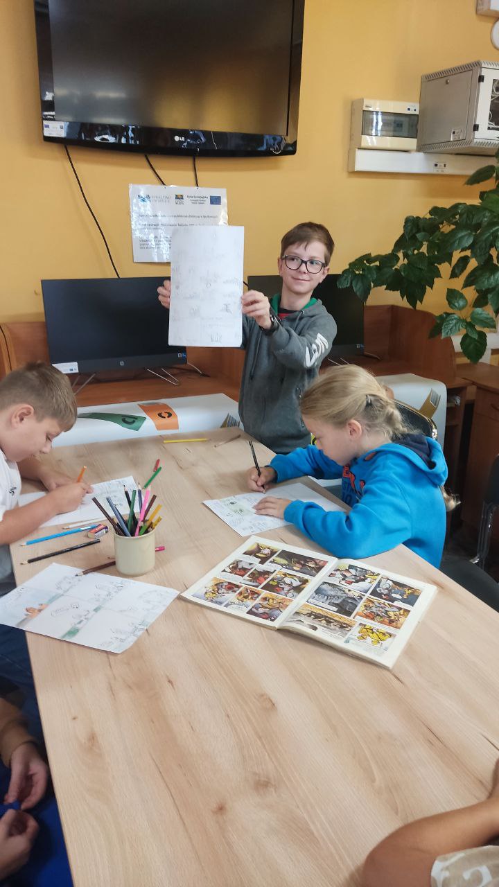 W spotkaniu wzięła udział grupa dzieci z Zespołu Szkolno-Przedszkolnego w Spytkowicach, które pod okiem eksperta miały okazję zajrzeć za kulisy powstawania komiksu. Prowadzący w ciekawy sposób opowiedział o elementach składowych historii obrazkowych – od pomysłu, przez scenariusz, aż po dymki, kadry i rysunek. Uczestnicy z dużym zapałem podjęli wyzwanie stworzenia własnych scenariuszy oraz przedstawienia ich w formie rysunkowej. Wykazali się przy tym ogromną wyobraźnią i zdolnościami plastycznymi, kreując barwne i pomysłowe historie. Efekty pracy podczas warsztatów zostały zaprezentowane przez każdego z uczestników. Wszystkie historie były ciekawe.