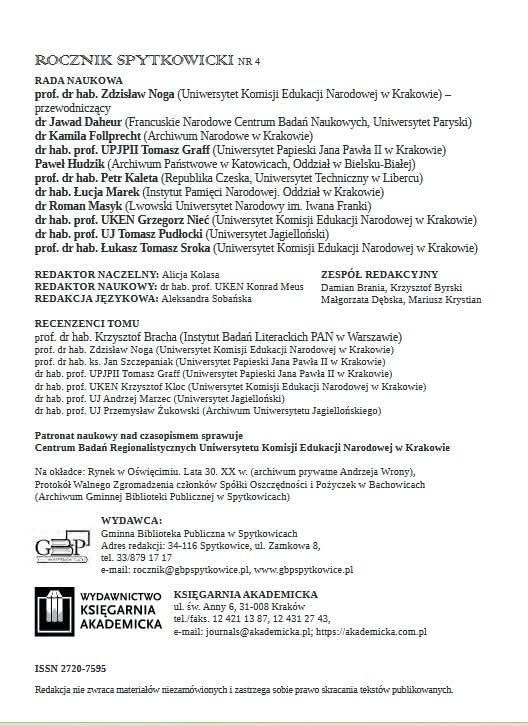 Szczególne podziękowania kierujemy do: redaktor naczelnej Alicja Kolasa, redaktora naukowego dr. hab. prof. UKEN Konrada Meusa, Rady Naukowej kierowanej przez prof. dra hab. Zdzisława Nogę, (w której zasiadają przedstawiciele ośrodków z Francji, Czech i Ukrainy), Autorom i Recenzentom oraz Wójta gminy Spytkowice Krzysztofa Byrskiego za sfinansowanie publikacji.